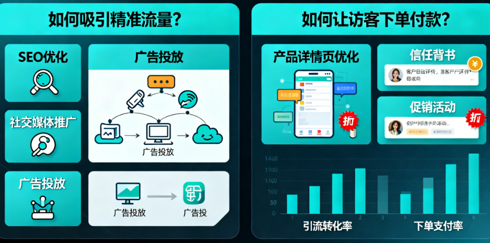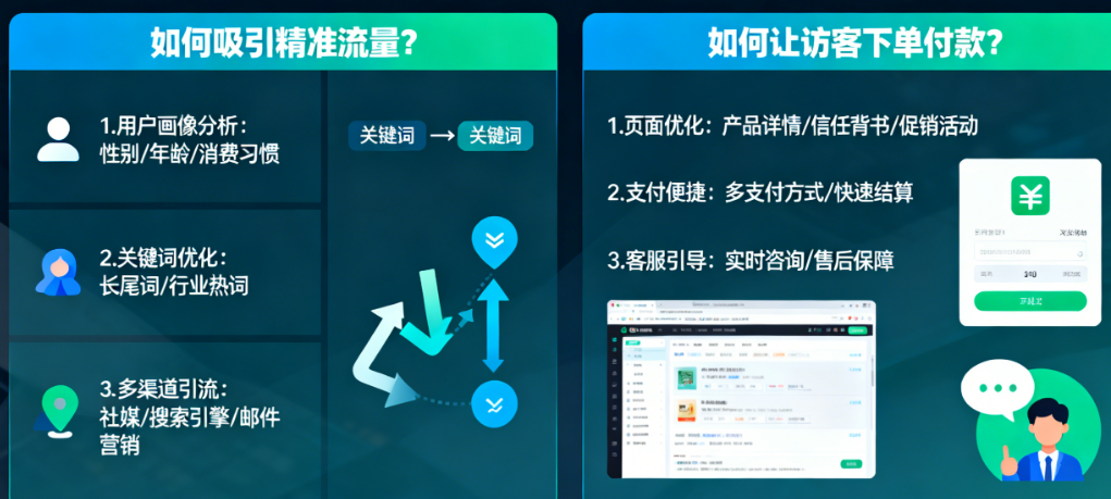 如何吸引精准流量?如何让访客下单付款?——自建站网店从引流到转化的系统策略