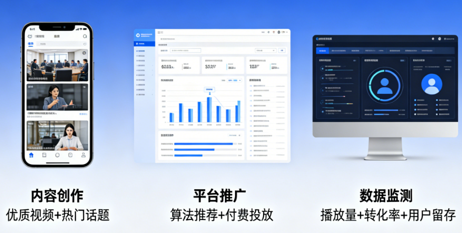 A:从你自己的私域开始——发朋友圈、发微信群,让第一批人进来。同时,每条视频都挂上小程序,持续发、持续引导。搜索关键词布局也要做,这是长期流量。