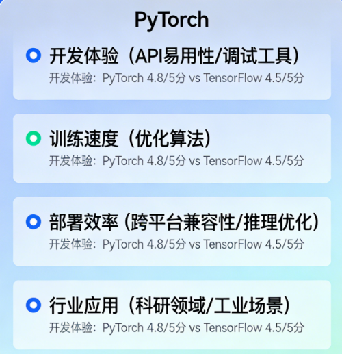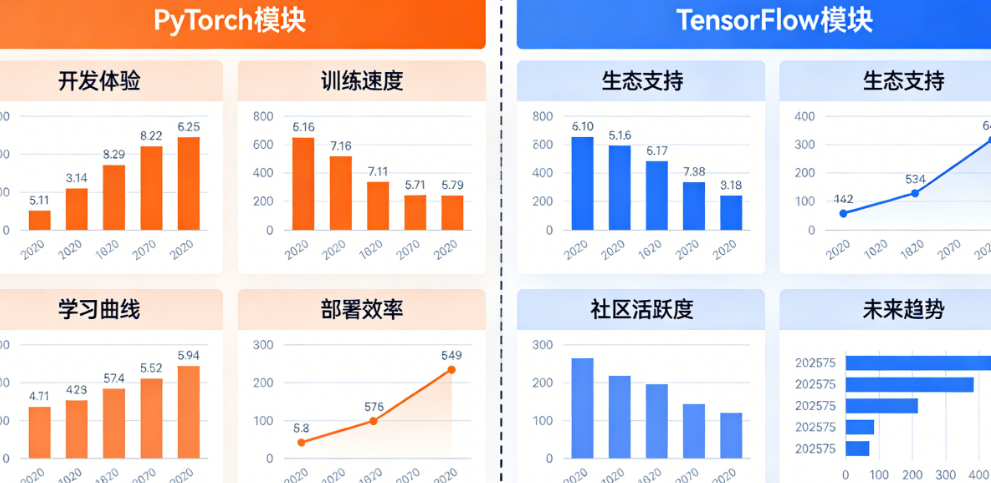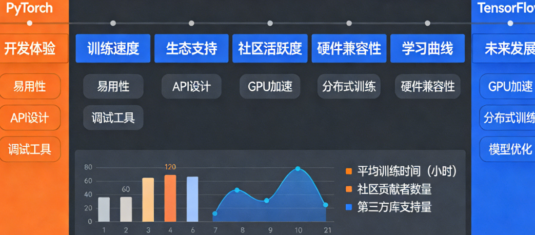 HuggingFace Transformers虽然同时支持两者,但PyTorch版本永远是“一等公民”,新模型发布时,PyTorch支持往往比TensorFlow早数周甚至数月。