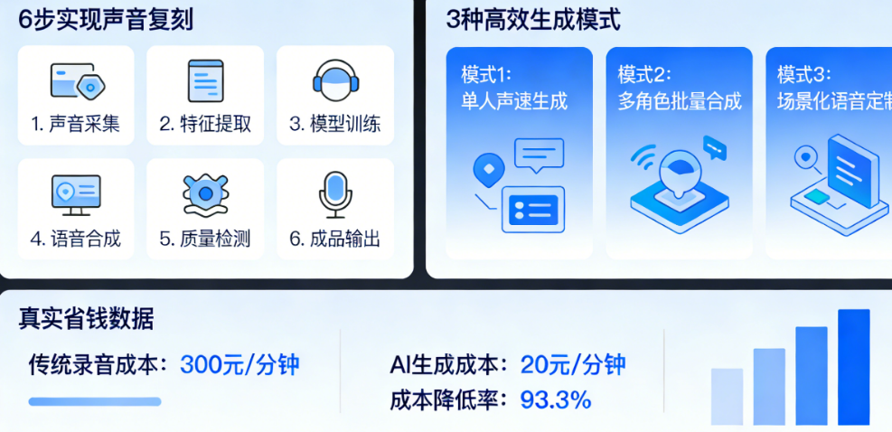 本文将为你完整拆解AI语音克隆与批量化生产的实战方法论——从6步实现声音复刻的核心流程,到3种高效生成模式的应用场景,再到真实省钱数据的深度测算。看完这篇文章,你就能把声音从“一次性消耗品”变成可复用的数字资产。