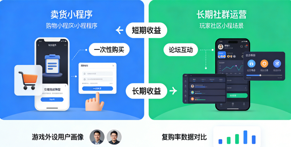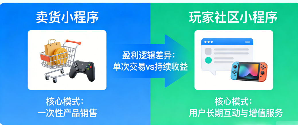 本文将为你深度拆解这两种模式的本质差异,告诉你为什么卖货小程序“赚一次钱”,而玩家社区小程序“赚一辈子的钱”。