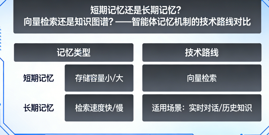 本文将带你深入智能体记忆的底层世界,厘清短期记忆与长期记忆的分工逻辑,解剖向量检索与知识图谱两条技术路线的优劣取舍。读完这篇文章,你不仅能理解“记忆”如何让AI从工具进化为伙伴,更能根据自身业务场景,做出最明智的技术选型。