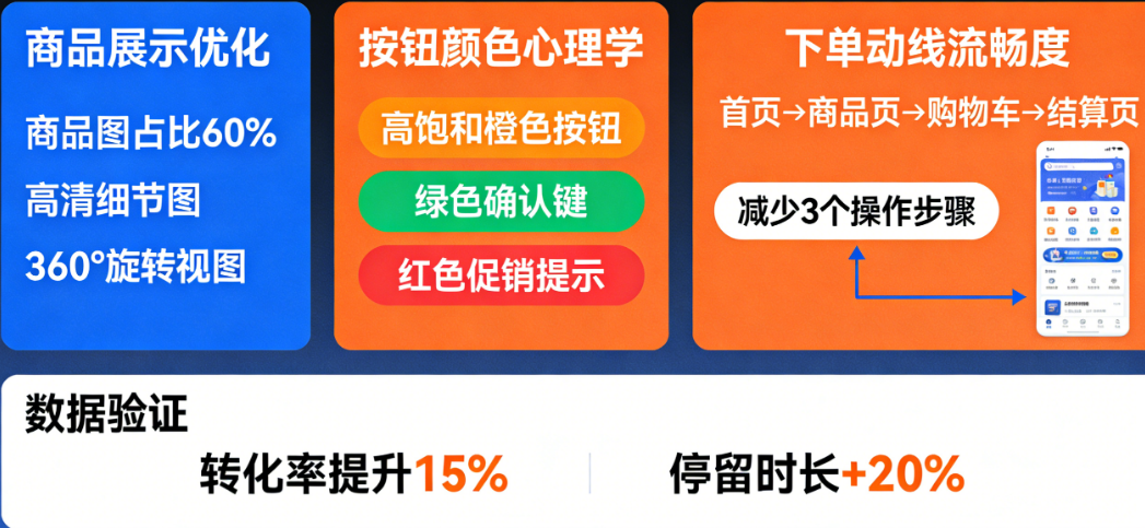 一个残酷的事实摆在所有电商从业者面前:用户下载你的APP只需要几秒钟,但让他下单,却需要跨越无数道心理门槛。界面设计从来不是“好不好看”的问题,而是“能不能让用户掏钱”的问题。很多电商APP设计犯了同一个错误——把界面当作品展示,而不是把界面当作销售漏斗。那些“带货”能力强的APP,背后都有一套精心设计的心理暗示机制:在用户犹豫时推一把,在用户注意力涣散时拉回来,在用户准备离开时制造一个无法拒绝的理由。本文将从商品展示、按钮颜色、下单动线三个核心维度,拆解电商APP如何通过界面设计系统性地提升转化率。无论你是产品经理、UI设计师,还是正在筹备电商项目的创业者,这套方法论都能直接落地。