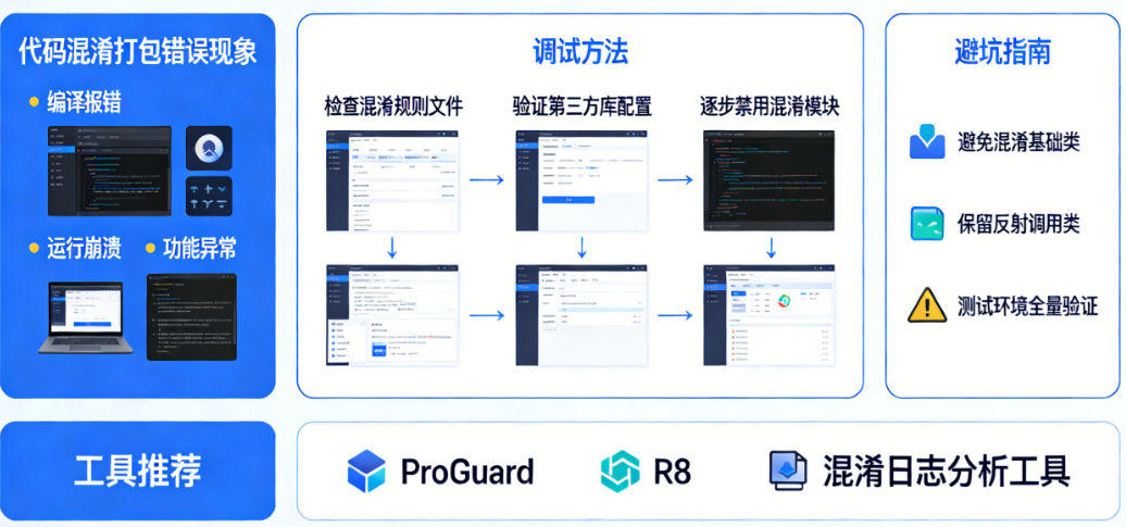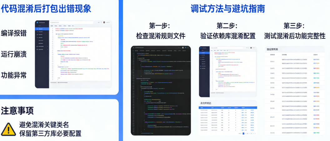 “本地调试一切正常,一打release包就崩溃”——这是无数跨平台开发者深夜加班时最崩溃的瞬间。你明明已经完成了功能开发,通过了所有测试,信心满满地准备发布新版本,结果开启代码混淆后,打包报错、运行时闪退、接口数据变成undefined、页面路由跳转失效……各种匪夷所思的问题接踵而至。更令人头疼的是,错误堆栈里的类名和方法名已经被混淆成一串毫无意义的字母,你根本不知道是哪里出了问题。这不是你一个人的困境。根据华为开发者社区的统计,在HarmonyOS和Android跨平台应用中,超过60%的混淆相关问题都集中在“网络数据访问”、“路由跳转”和“第三方库依赖”这三个场景。本文将系统讲解跨平台APP混淆配置的核心原理、常见报错类型及对应的调试方法,帮助你在混淆后打包出错时快速定位问题、找到解决方案。