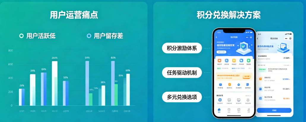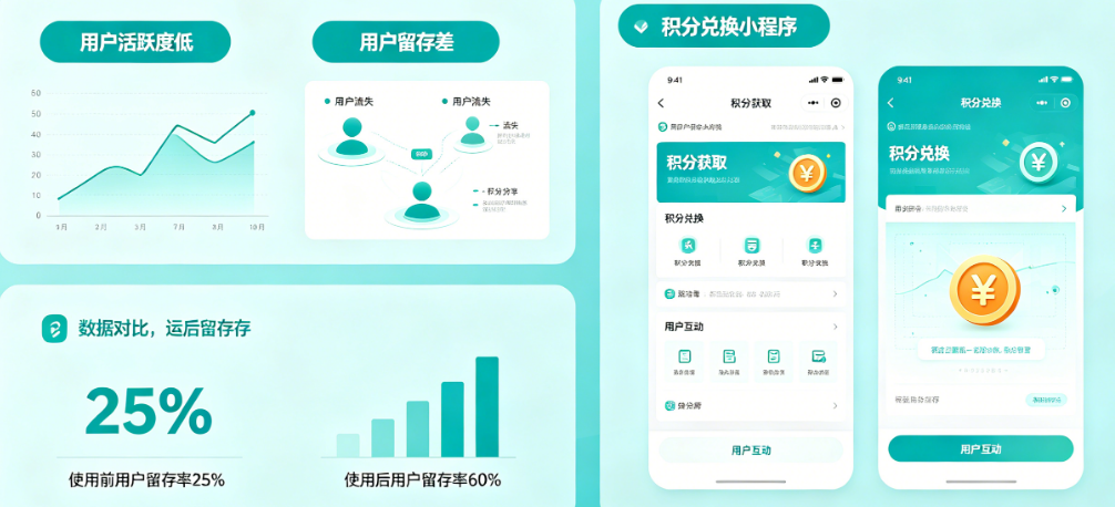 你的小程序是否也陷入了这样的困境:花了大价钱做推广,用户来了,但第二天就再也不见踪影;每天辛辛苦苦发优惠券,用户领完就走,复购率始终上不去;后台数据惨淡,活跃用户数像过山车一样起起伏伏。这不是你一个人的烦恼。数据显示,小程序整体次日留存率已跌至19%左右,超过80%的用户在首次访问后再也不会回来。面对这样的局面,很多运营者把原因归咎于产品不好、功能不够,却忽略了一个已经被反复验证的解决方案——积分兑换小程序。它不是花里胡哨的功能叠加,而是一套完整的用户行为激励机制。当用户为了攒够积分换一个心仪的烤箱而主动每天签到、主动拉朋友入群、主动完成各种任务时,你的用户活跃和留存问题,就已经找到了答案。