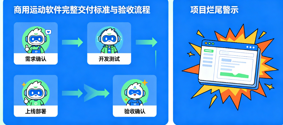 商用运动软件的交付绝不仅仅是“把软件装好”那么简单。功能完整性锚定业务价值实现,性能稳定性筑牢用户体验底线,安全合规性划清法律风险边界,文档完备性沉淀组织数字资产。这四个维度缺一不可,任何一个维度的缺失,都可能成为项目烂尾的导火索。作为采购方,你要做的不是等到验收那天才“发现问题”,而是在合同签署时就把这些标准写进去,在开发过程中分阶段验证,在验收时逐项核对。标准有了,流程清了,谁也不敢再用“交付不清”来糊弄你。